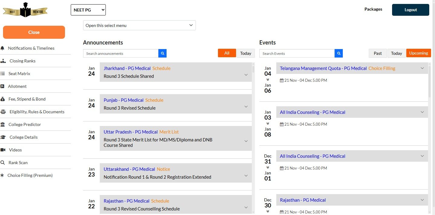 03-10-2024 | Maharashtra | Maharashtra - PG Medical - Registration | Round 1 Online Registration has been extended | |
